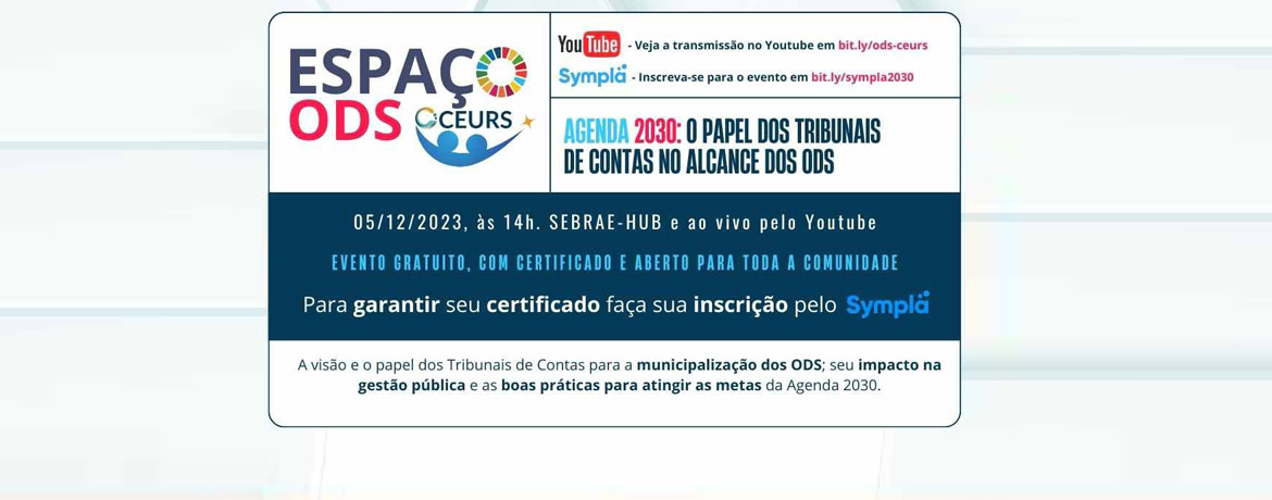 O programa será realizado nesta terça-feira, 05 de dezembro, às 14 horas, no Sebrae-Hub de Florianópolis (SC), mas terá transmissão ao vivo pelo canal do Youtube. Para assistir, basta acessar https://bit.ly/ods-ceurs.