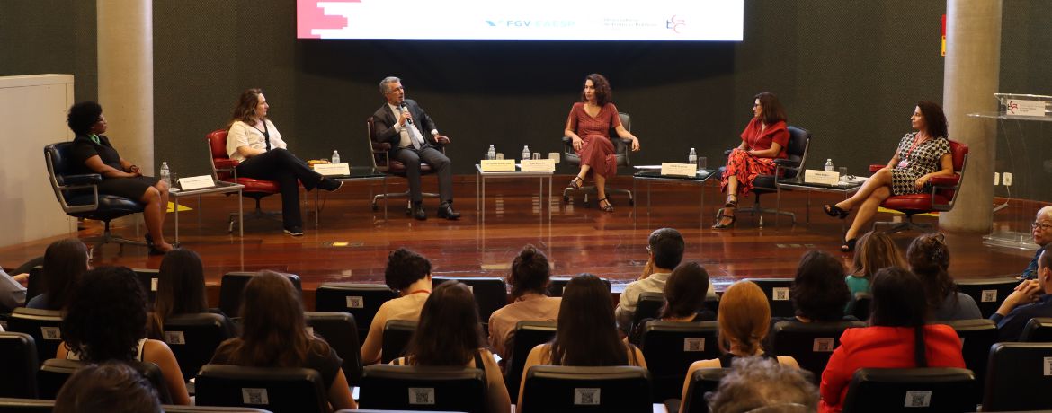 Participaram da Abertura o conselheiro supervisor da EGC, João Antonio da Silva Filho; a coordenadora de Planejamento Urbano da Secretaria Municipal de Urbanismo e Licenciamento; a arquiteta Heliana Lombardi; a coordenadora do Observatório de Políticas Públicas do TCMSP, Egle Monteiro; a professora e coordenadora do Curso de Graduação em Administração Pública da FGV-EAESP, Cibele Franzese; e as professoras do curso de Administração Pública da FGV-EAESP e coordenadoras do Projeto Aplicado, Zilma Borges e Rogiene dos Santos.