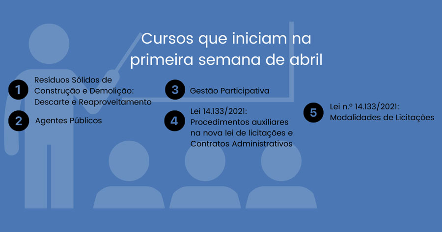 No dia 04 de abril, das 14h às 17h, o curso virtual vai cuidar do tema “Lei 14.133/2021: Procedimentos auxiliares na Nova Lei de Licitações e Contratos Administrativos (NLLC)”. Por meio da formação, o aluno da EGC fica sabendo quais os mecanismos previstos no artigo 78 da NLLC que merecem atenção, aprofundando-se nas novidades e alterações dessa lei, para viabilizar sua aplicabilidade pela Administração Pública. A organização é da professora Luciana Andrea Accorsi Berardi, com participação nas aulas dos professores doutores Ronaldo Andrade; Ana Maria Pedreira; André Malheiros; e, Ricardo Ribas.
