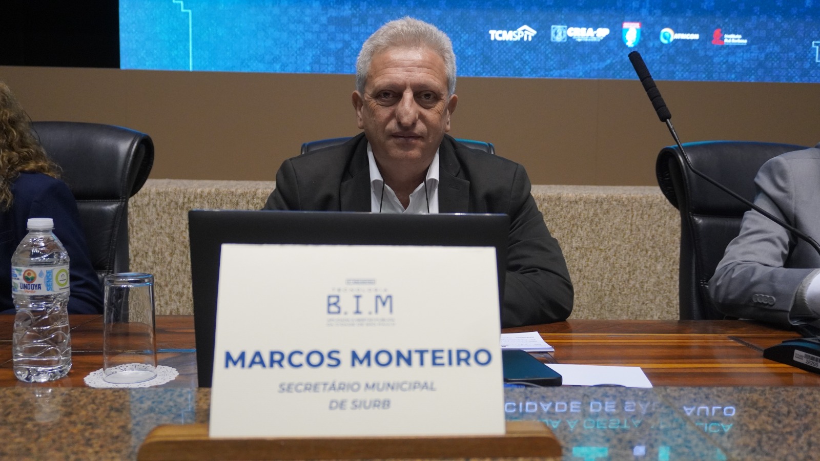 A mesa de abertura contou com a presença do Presidente do TCMSP, Domingos Dissei; do Supervisor da EGC do TCMSP e Vice-Presidente da Associação dos Membros dos Tribunais de Contas do Brasil (Atricon), Conselheiro João Antonio da Silva Filho; do Secretário da SIURB, Marcos Monteiro; da Vice-Presidente do CREA-SP, Marilia Gregolin Costa de Castro; do Presidente do Instituto de Engenharia, José Eduardo Frascá Poyares; da Presidente do Instituto Brasileiro de Auditoria de Obras Públicas (Ibraop), Adriana Portugal; da Secretária do Tribunal de Contas da União em São Paulo (TCU-SP), Manuela de Andrade Faria - representando o Presidente do TCU, Vital do Rêgo; e da Auditora de Controle Externo do TCMSP, Neila Bolzan.